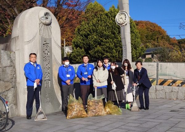 今回は、地域貢献活動の一環として、 12月9日に普段の清掃場所とは異なるエリアで清掃ボランティアを実施しました。 松山総合公園の入り口付近から当社までの歩道を中心に、 社員全員で協力しながら清掃を行いました。